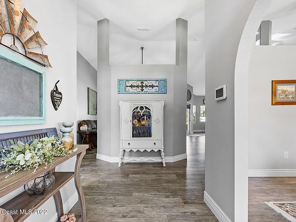 Beautifully updated home on an acre of land, located in Canaveral Groves. This newly renovated home features a split floor plan, formal dining room, large living room, ceiling fans, an office, and vaulted ceilings throughout. The gorgeous, updated kitchen features an island as well as a breakfast nook and stainless steel appliances. Spend your time on the large, screened-in patio and an oversized backyard surrounded by greenery with plenty of space for a pool!