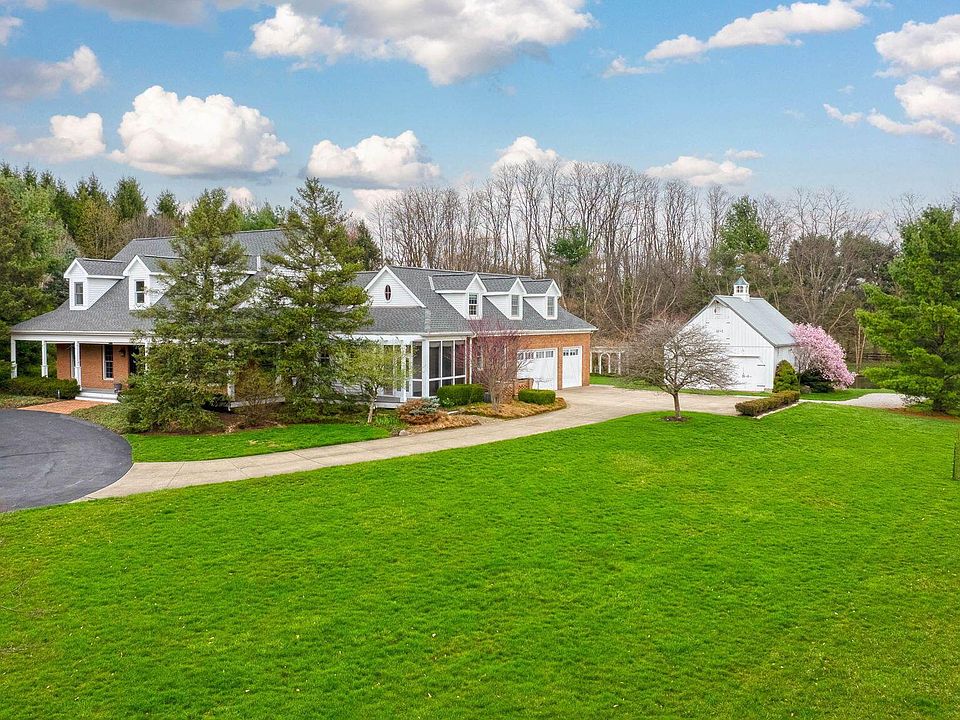 Nestled on 5 gated acres, this estate offers privacy, natural beauty, and modern comfort minutes from city conveniences. A fenced property surrounds a scenic pond, home to abundant wildlife. The chef's kitchen has high end SS appliances, custom cabinetry, large island, and a casual Dining area. First-floor primary suite overlooks the pond and features hand-hewn 1800s Ohio barn planks. Enjoy the warmth from hardwood floors, new first-level carpet, and a wood-burning fireplace. Home has 4 bedrooms, 4.5 bathrooms, media room, screened-in porch, front porch, large terrace, and 1st floor laundry. The barn with loft offers endless possibilities, plus a 40' RV pad with hookup. The large basement includes a wood shop, craft room, or living space. This rare Gahanna estate is move in ready!