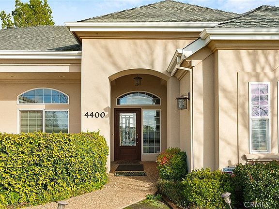 Classy and beautiful explain this custom built over 2600 square foot, 3 bedroom, 2 bath home in attractive lower Paradise offering picturesque views and upscale living! You will immediately be impressed with all the custom features including coordinated solid wood cabinetry, crown molding and custom built-ins throughout. Kitchen boasts with endless upgrades including granite countertops and unique features such as an appliance garage, pull out drawers, built in desk area and a peninsula that is perfect for entertaining. The neighboring breakfast nook is ideal to enjoy the morning sunrise plus there is a large dining room offering sunset views and access to the private courtyard. The spacious living room and family rooms lend themselves to a perfect set up for entertaining and relaxation complete with custom window coverings, recessed lighting and a beautiful gas fireplace to keep you warm. The primary suite offers built in speakers, a sitting area, two spacious walk-in closets and bathroom full of luxuries including a separate shower, soaking tub, vanity area and double sinks. Home proves a perfect set up for a second master/guest quarters with a split bedroom floorplan complete with a neighboring bath and private patio access. The third bedroom is currently set up as a den offering a custom built-in desk with plenty of room for any additional needs. Indoor laundry room features expansive storage, a folding counter and utility closet. There are two large closets, one on each side providing ample space for all your linens and storage needs. Front and back yards are adorned with mature landscaping, automatic watering systems and is fenced and cross fenced. Property features hard to come by RV parking with double gated access PLUS there is additional neighborhood RV storage if needed. The oversized 2 car, side entry garage features a workshop area, perfect for all your needs. Located just minutes from beautiful Lake Oroville this location is a simple scenic commute to both Chico and Oroville. Explore this charming home today and become a part of the quickly growing community of Paradise.