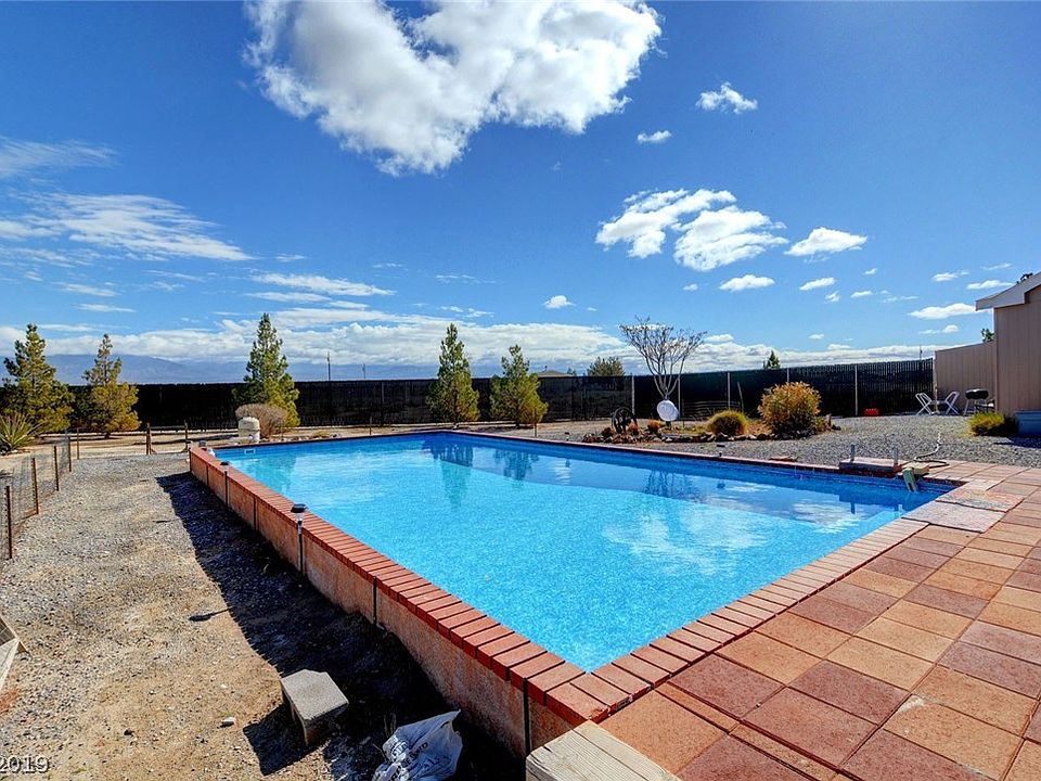 Magnificent 1 story home with a spectacular mountain view in a charming Pahrump community! Well maintained open floor plan, complete kitchen upgrades, and massive master bathroom. Spacious backyard with outstanding blue oasis pool.