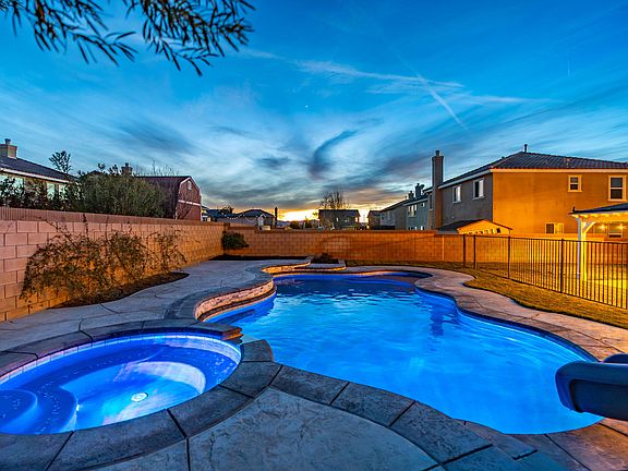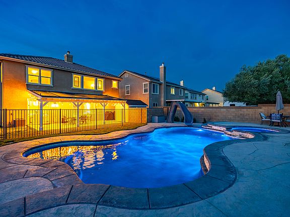 *** LIVE BEAUTIFULLY*** Beautifully Upgraded 4-Bedroom Pool & Spa Home with Bonus Room! Welcome to this stunning, upgraded home featuring 4 bedrooms, a bonus room that can easily serve as a 5th bedroom, and a resort-style backyard with a pool and spa. Nestled on a quiet cul-de-sac, this home offers modern upgrades, custom finishes, and an open, inviting layout perfect for comfortable living and entertaining. The updated kitchen is a chef's dream, boasting quartz countertops, soft-close drawers with organizers, soft-close doors, a farmhouse sink, a new slide-in range, and a microwave oven. The spacious living areas feature laminate flooring throughout the downstairs, along with trim and baseboard upgrades in the living room, front room, kitchen, and bedrooms. Crown molding enhances the bedrooms and front room/office, while one bedroom includes custom window seat storage and wainscoting for a charming touch. The home's custom-built staircase adds elegance, while built-in storage shelves in the downstairs closet provide convenience. The downstairs bathroom is upgraded with wainscoting and tile, while the upstairs bathroom features upgraded tile and a refinished vanity. The family room is centered around a beautifully designed custom-built fireplace surround, creating a warm and inviting space. Step outside to your private backyard retreat, complete with an in-ground pool and hot tub featuring a waterslide, solar and gas heaters, and a covered patio for year-round enjoyment. A tool/storage shed adds extra space for organization. With thoughtful upgrades, modern amenities, and a fantastic location on a quiet cul-de-sac, this home is truly a must-see. Schedule your private showing today!