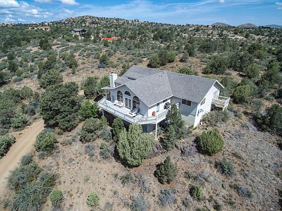 Spectacular Panoramic mountain views everywhere you look including Granite Mountain, along with views of the arena and barn area while standing outside on the trex deck which wraps around this home that sits on 3.63ac. So, if privacy is what you would like in your next home, look no more. Barn with power, water, lighting inside and out, covered porch, option for 4-8 18x18 extended covered stalls with arena sand, nice open breezeway, hay storage/tack room with attached garage/workshop with concrete apron, option for restroom or laundry area, 12x12 tool shed with power and water,120 x 160 arena with arena sand and fixed 4ft railing with 5ft pipe rail. 60' Round pen, wash rack, and hitching post. Large country kitchen w/island, pantry and large dining room off the kitchen,