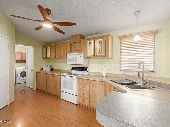 Welcome to #143 at Grand Missouri Mobile Home Park in Glendale, AZ! This affordable and well-located home sits in a vibrant all-ages community near 43rd Ave & Missouri. Enjoy amenities like a clubhouse, fitness center, pool, sports courts, and pet-friendly policies. Lot rent typically includes water, sewer, and trash. With easy access to schools, shopping, and major freeways, this is an ideal choice for first-time buyers, families, or downsizers seeking comfort, convenience, and community living. Don't miss out—request a tour today! AC replaced in 2020!! All furnishings can convey with purchase.