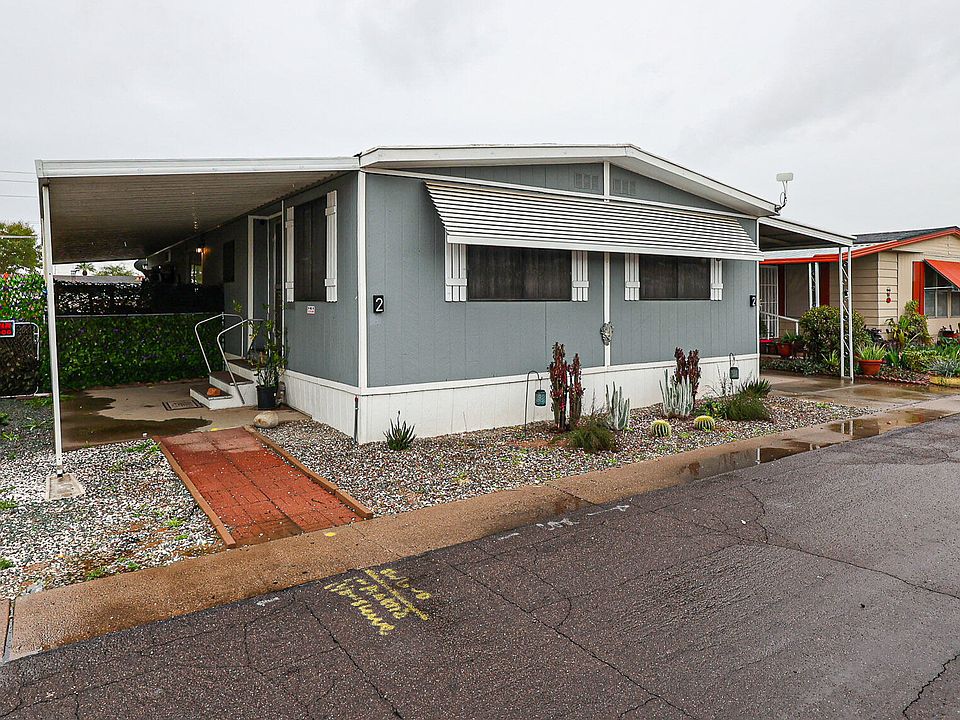 This is an all-ages, peaceful, family park, nestled in a quiet Glendale neighborhood. Beautifully updated 2-bedroom 2 bath home is move in ready. Sparkling clean kitchen with new backsplash, fixtures and counters as well as stainless steel appliances, dishwasher and microwave. Both bathroom showers, including fixtures, custom designed and installed by Jacuzzi brand October '22. All walls, doors and built-ins painted December '22. New water heater. Roof resealed. There are two dining areas, inside laundry and great entertaining area in the cozy family room. Playground, community park and two community pools with spa.
