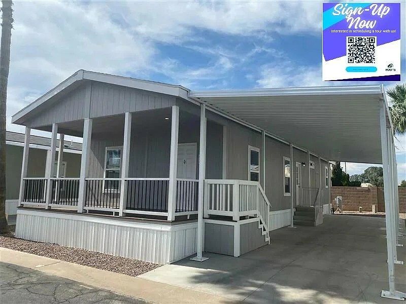 Welcome to your dream home in the heart of Grand Missouri, here in Glendale, Arizona. Built in 2023, this 1040 sq. ft. home features 2 bedrooms and 2.00 bathrooms, and is move-in ready. Submit an application today! Choosing to call Grand Missouri home is a decision that promises comfort, recreation, and affordability for individuals of all ages. There are so many amenities to choose from in this manufactured home community, from a welcoming clubhouse and a fully-equipped community kitchen to a fitness center that caters to diverse wellness needs. The hot tub provides relaxation, and the convenience of an onsite laundry ensures practicality in daily living. Grand Missouri offers residents not just a home but a gateway to a thriving and vibrant community. Explore the historic downtown area with its charming shops and eateries, or catch a game at the State Farm Stadium, home to the Arizona Cardinals. For outdoor enthusiasts, hiking trails in the Thunderbird Conservation Park provide breathtaking views.