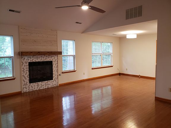 Charming home with pecan floors, open floor plan, gas fireplace, new windows, Corian countertops, stainless steel appliances. Large master shower and master closet. Ceiling fans, Separate laundry room. 2 car garage. Covered back porch with wooded backyard. Southwest Columbia, close to MKT trail. Rockbridge School. John Warner, Beulah Ralph schools No pets Tenant pays utilities. Tenant responsible for lawn care. One year lease. No smoking / vaping. No pets