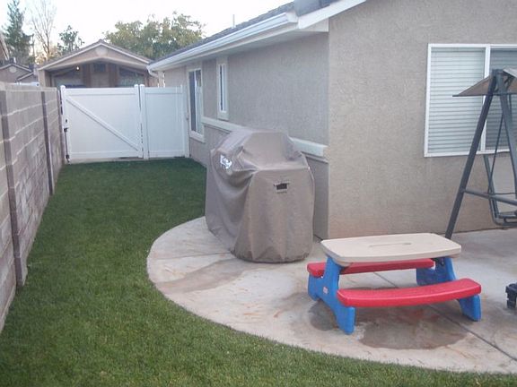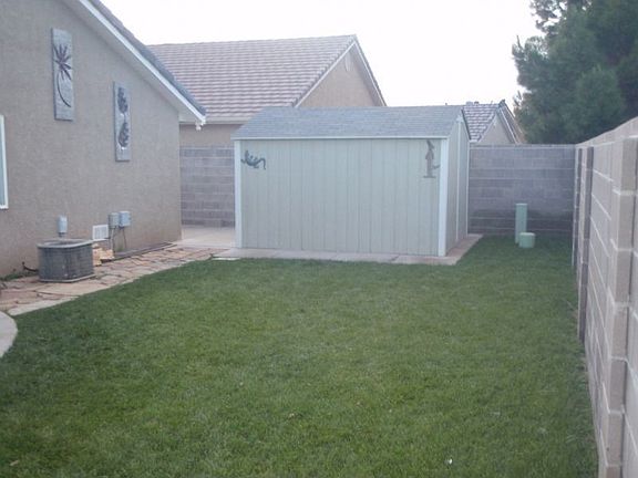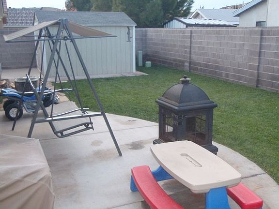 Block walls, landscaping, RV Parking, storage shed, nice backyard, fully landscaped. Lots of concrete for kids to play. Includes refrigerator with full offer.