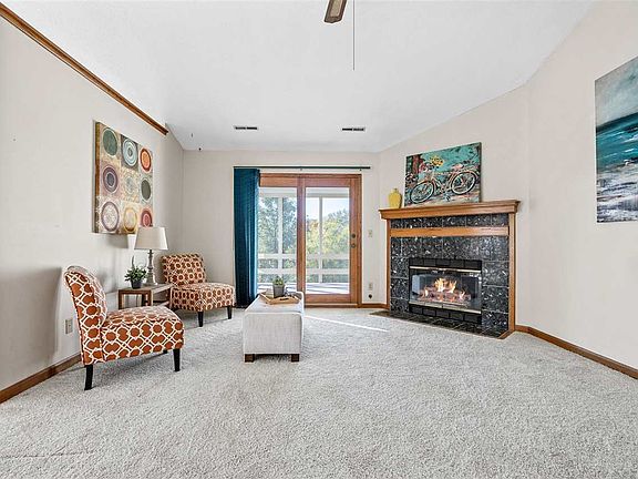 Welcome to 4400 Westchester Unit D! A spacious and bright condo located on the NE side of Cedar Rapids. Enjoy the security of the second floor unit. Walk in and be greeted by living room with a built in fireplace. Connected to the living space is the dining area and kitchen, with vaulted ceilings throughout the main living space. Right off the kitchen and living room is the beautiful 3 seasons room. Perfect for enjoying morning coffee spring through fall! The primary suite is the perfect space to relax with a private en suite bathroom and expansive walk in closet, what more could you need! This condo also features another full bedroom and bathroom. On the lower level of the building you will find the attached garage, this property offers a one stall parking spot. Schedule your showing today and come see for yourself all it has to offer! Ideal possession is early October. Pets not allowed due to association rules.
