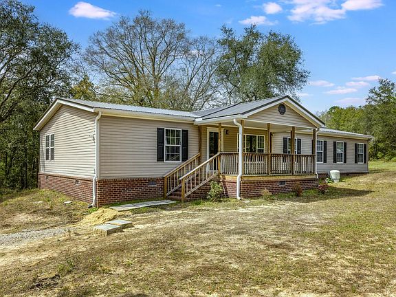 If you're looking for space to spread out- this property is just the one for you! 3 bed, 2 bath manufactured home on 7 acres! This home has brick skirting on all sides with a beautiful covered front porch. Inside you will find 2 separate living areas, a large kitchen, and 2 flex spaces. One in the main living area and one off of the master bedroom. Stepping out the back door you have 2 back porches that overlook the wooded property and a storage shed. Down the trail you will find a second well for additional water needs! The metal roof was installed in December 2023.