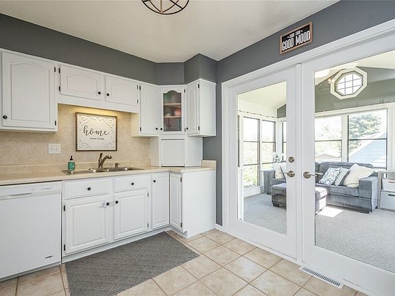 Stunning 4 bedroom, 2 bath Urbandale home with almost 1,700 finished square feet. This gorgeous and immaculate home is picture perfect! Highlights include fabulous vaulted sunroom overlooking the large fenced backyard, maintenance free exterior, updated laminate flooring, new light fixtures, new lower level bathroom, white doors and trim throughout. Large entry w/ dual side lights. Main floor features oversized living room with crown molding and ceiling fan. Spacious dining area with white wainscotting & 2' wood blinds. Large windows throughout, lots of natural daylight all day long! White kitchen has tile floor, gas stove, stainless steel sink & updated faucet, eat-in area if desired and French doors to sunroom. 3 bedrooms on main floor, all with ceiling fans. Full bath w/ tiled shower and window. Lower level features 4th bedroom, large laundry room with folding table & storage area and updated bath. Oversized 2 car attached garage has lots of storage space and door to the backyard. Large backyard with stone patio & 2 large storage sheds. Don't miss the hidden storage under the sunroom, access from the backyard. Yard is well maintained, has landscaping beds and borders throughout.