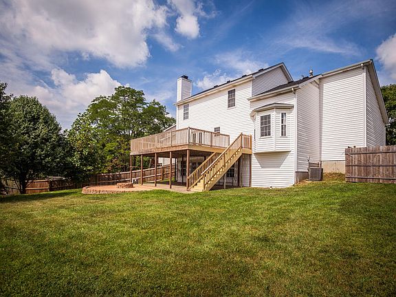 Immaculate family home freshly painted and carpeted with one of the largest privacy fenced yards in the area. Completely remodeled kitchen with new cabinets, countertops, stainless appliances, island and breakfast bar. Nice eat in dining area just off kitchen. Kitchen opens to large family room with fireplace and patio doors leading to deck. Laundry and guest half bath complete 1st floor. Upstairs are 2 good sized bedrooms serviced by hall bath and private master suite with huge walk in closet, extra storage access over garage and private bath with jetted tub and double vanities. Walkout lower level perfect for man cave complete with ''secret'' room and plenty of unfinished storage. Refurbished deck overlooks huge fenced rear yard. New paint, carpet and more plus quiet cul de sac locati