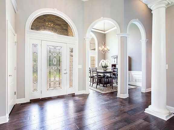 Regal and stunning, this gorgeous mostly new ranch is nestled on a quiet cul-de-sac in Southern Breeze in J-town - minutes from anywhere in Louisville! This home showcases elegance in living through all the incredible features it boasts, from the soaring coffered and vaulted ceilings, to the stunning hardwoods, to the custom moldings, it's all here! From the moment you enter you'll be swept away, bathed in glorious sunlight, from the arches, to the columns, to the rich fireplace, and more! The kitchen is a chefs delight, here you'll find glorious glazed custom cabinets, delicious granite, luxury appliances and more drawers than you could ever count!