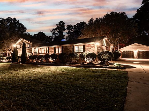 Outdoor entertainer's dream! Over an acre in Raleigh, just outside of the beltline! Inground pool, hot tub, koi pond, fire pit, covered patio, beautiful custom outdoor lighting, and horseshoe pit are all in place and ready for you! 4 car garages, greenhouse, multiple outbuildings, and an abundance of storage. Inside you will find a large kitchen, complete with double ovens, pot filler, wine fridge, ice maker, and two sinks! Dedicated office. Hardwood floors throughout kitchen, dining room, and living room. Newly refinished hardwood floors in primary bedroom. Hardwoods are also under carpets in upstairs bedrooms. Downstairs bedrooms and bonus room have tile under carpet. Steam shower in downstairs bathroom. Three new HVAC units installed in 2022. Crawlspace has been encapsulated. This house has it ALL!