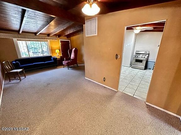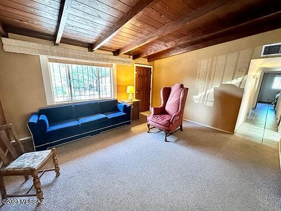 Midtown Mid-century! This spacious home is situated on 1/3 of an acre, on a quiet corner lot with ample parking, including single carport. Three bedrooms and 1.5 baths in 2,160 square feet makes for lots of room to gather together under gorgeous, gleaming wood ceilings. Bonus room can be your office, library, studio, home gym. Ready to enjoy beautiful outdoor Tucson living? The private, well-maintained backyard boasts expansive extended patio space, an abundance of shade from mature citrus trees.. Listing Agent Related to Seller.