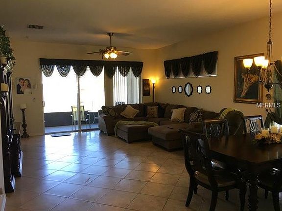 This beautiful 3 bedroom, 2 bath, 2 car garage home has all of the best updates as well as any community amenity you can imagine. The landscape is well manicured with a beautiful aluminum fenced back yard with lush St. Augustine grass. The entire home is tiled throughout boasting an open floor plan and cathedral ceilings in the common areas. There is a formal dining area as well as a more quiet space in the eat in kitchen with lots of counter space, real wood cabinets, pantry and updated appliances. The living room opens up to a screened lanai looking into the back yard. The master suite has tall windows for natural lighting and has double walk in closets off of the master bath entrance. The master bath has a double sink and vanity with a wall to wall mirror, very large walk in shower and private too. Neighborhood amenities include 2 community pools, playground with basketball courts, soccer field and picnic pavilion as well as a community dog park. The clubhouse is equipped with a fitness center, tennis courts, media room, private studies, kitchen and quiet indoor and outdoor seating over looking conservation and pond.