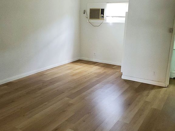 Cozy studio with new wood vinyl flooring, lots of closet space, tiled shower area and easy cooling AC. There is NO kitchen but there is a fridge included and space for a small cabinet/counter for a microwave/hotplate and small table and chairs. Lots of shade for a cool, easy place to make your home. Call to schedule a showing at your earliest convenience.