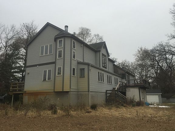 Foundation is Original but Whole house has been rebuilt in 1995 but needs work and sold AS-IS. Spacious Home on over a wooded acre on quiet dead end on the Fox River! Private Pier & Gazebo! Fireplace & Built in bookcase in Living Rm, Cathedral Ceilings in Kitchen w/Skylights & Island, Corian Cntrs, Huge deck off sliding glass dr, 3 BRs 2nd flr plus 1st flr BR, whirlpool bath, 2 car gar to Bsmt access. Make an offer! Estate sale. Home is not in a flood plain. Letter of flood plain removal attached in documents.