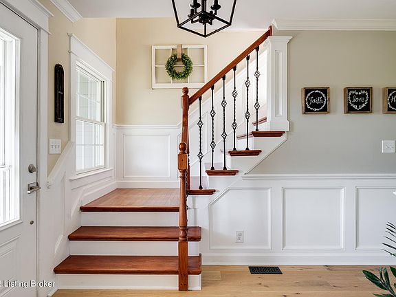 Welcome home to 4401 Grand Circle in Crestwood's prestigious Grand Dell subdivision! This home has had a top to bottom remake and is move-in ready! The main level features a great room, formal dining room, eat-in kitchen, den off the kitchen and a half bath. The Great Room has beautiful wood floors, an electric fireplace, gorgeous trim work and neutral colors. The Formal Dining Room features wainscoting, wood floors and incredible trim work. The Eat-in Kitchen is TO DIE FOR!! Center Island with butcher block and bar seating for 3. Gorgeous custom cabinetry, granite countertops, subway tile backsplash, stainless steel appliances, wood floors plus an area for a study or large breakfast area overlooking the side porch. A half bath and separate mud room complete the first floor! The Primary Bedroom Suite is on the second floor and is one you WON'T FORGET!!! The spacious bedroom has wood floors, a vaulted ceiling, awesome walk-in closet (shiplap), beautiful trim work, a brick accent wall plus a sliding ladder to a loft overlooking the Primary Bedroom! This loft area makes the perfect in-home office or retreat! The Primary Bathroom is AMAZING!! His and Her vanity, gorgeous floors, open shelving and a wet room with walk-in shower plus a soaking tub area! This bathroom is incredible!! 3 additional Bedrooms on the second floor, one very large with it's own mini-split system over the garage. There is another full bathroom on the second floor. The finished lower level walkout features a large family room with stone accent walls great for a media space or rec room. There is an unfinished storage room and a finished laundry room. On the exterior, this home has more to offer!! There is a front porch, a covered side porch (with mechanical louvered cover) off the kitchen area, a lower level patio, plus a deck and firepit area that all make enjoying the outdoor area of this home such an experience! The 1 plus acre lot is beautifully rolling and overlooks a neighbor's pond. There is a garden shed perfect for storing your outdoor equipment and an attached two car garage. 4401 Grand Circle has been impeccably improved and maintained by this owner and is ready for you! Award winning Oldham County schools and close proximity to area amenities.