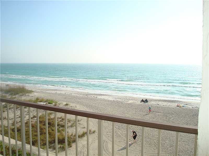 Enjoy DIRECT GULF VIEWS from nearly every room of this beautiful end unit condo, with complete privacy. This third floor unit comes turnkey furnished, with newer hurricane windows in the main living area plus the balcony sliding doors. The bright and airy living room has wood floors, crown molding and gorgeous views of the beach and Gulf. The kitchen has been renovated including wood floors and recessed lighting, plus the bathrooms have been tastefully updated as well. The second bedroom has a small office area. Step onto the spacious balcony, sit and relax as you enjoy the magnificent turquoise waters, pristine beaches, and spectacular sunsets. This very well maintained building has a roof that is two years old, and low maintenance fees. Amenities include a newly refurbished Gulf front pool, fitness room, a gas grill and sauna for your enjoyment. The pool area has new brick pavers, plus this condo had new A/C in 2010. This unit also permits a washer and dryer. A storage unit off the balcony, another private locker in the building & a large walk-in room off the entryway makes for great extra storage. One assigned covered parking space. A secure building with in-house management. Meticulously maintained, move-in condition. It's worth your time to visit and see what this lovely condo has to offer. A perfect year round or second home!