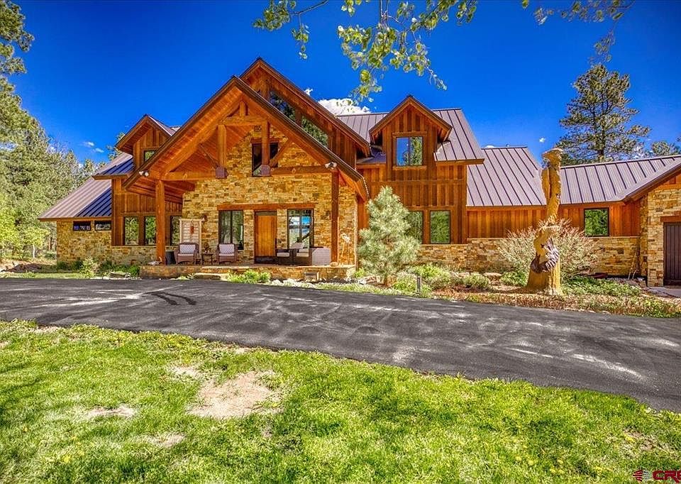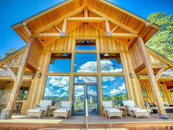 Welcome to the crown jewel of Hidden Valley Ranch—where handcrafted timber and stone meets unparalleled mountain views. This stunning home is a rare opportunity in one of Pagosa Springs' most desirable ranches, complete with 55 acre trout and bass stocked lake. With only one home typically available per year—and this one is simply extraordinary. Perched on 35 acres, this luxury estate captures jaw-dropping views of Pagosa Peak and the North Range of the San Juans from nearly every room. Inside, you’ll find a breathtaking great room with soaring ceilings and a dramatic floor-to-ceiling dry stack stone fireplace—built on its own foundation using locally sourced stone. 4 ensuite bedrooms offer privacy for guests and family. The chef’s kitchen featuring Wolf and Subzero appliances, a butler’s pantry, and a handcrafted Mesquite wood bar make this a perfect cooking and gathering place. Custom-built 792-bottle wine room is a true showstopper. Upstairs, a private office above the garage offers a peaceful remote workspace, supported by Hidden Valley's dedicated WiFi towers and cell boosters for seamless connectivity across multiple devices. Step outside to world-class outdoor living: soak under a “Sky Full of Stars” in the hot tub, gather around the fire and conversation pit, or host unforgettable evenings with a fully equipped commercial-grade outdoor kitchen and ample seating on nearly 1,400 sf of decks both open and covered to enjoy when the afternoon showers come in. An oversized 3-car garage is complemented by a separate workshop/barn/toy storage space, and a GroDome greenhouse lets you grow herbs and veggies year-round. The land is thoughtfully fire-mitigated while still surrounded by mature Ponderosa Pines, Spruce, and Aspen for privacy and shade. Hidden Valley Ranch spans 1,630 pristine acres with only 35 homesites, a private 55-acre lake, and miles of private trails for hiking and horseback riding. AND AN INDOOR PICKLEBALL COURT for owners as well! Just five miles north of Pagosa Springs, this is luxury mountain living at its finest—peaceful, private, and absolutely unforgettable. Square footage of improvements were measured 6.12.25. If square footage is an important criteria please request copy of measurement summary from Broker