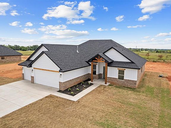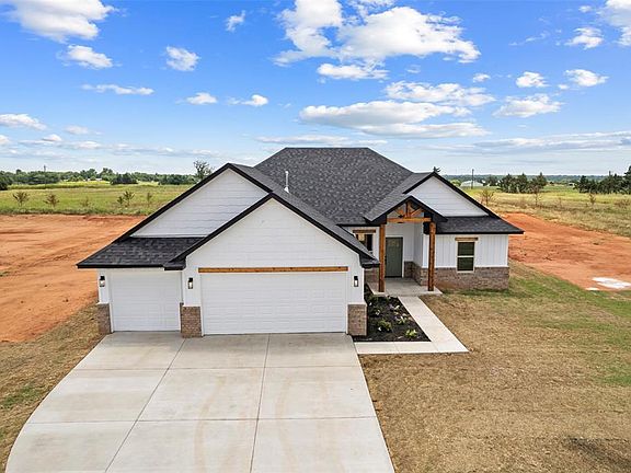 Step inside this warm and inviting newly constructed home! This home offers 4-bedrooms, 2-full bathrooms, 3-car garage and sits on just under an acre (.80 MOL). This property includes an open concept main living while the bedrooms are split to provide the right amount of privacy. All bedrooms and closets are carpeted. While wood-look tile covers the main living and bathrooms. This home is flooded with natural light as the builder likes to upgrade window sizes as well as provide windows where most do not - like the closets! The primary suite is a dream with a soaker tub, water closet and oversized shower! Covered front and back patios ensure you will capitalize on enjoying every sunset Oklahoma has to offer. Located at the entrance of Guthrie's newest development, North Broadway Place. This is where country living meets class and desire. Reach out directly to schedule your private tour today!