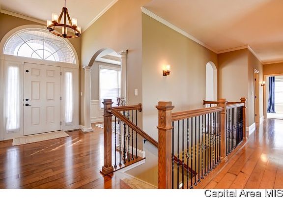 This preinspected 4-5 bedroom home is located in Chatham Schools with Springfield address and utilities. The foyer opens to a formal dining room and separate office. It features beautiful hardwood floors and a vaulted living room with stacked stone fireplace and bookshelves. The kitchen showcases a wall oven, gas range, tile backsplash, granite counters and island with seating. The master bedroom and bath offer tiled glass shower and jetted tub. Downstairs, you will find a family room, office, theater, bedroom, bath, and storage! The fenced backyard is private with a stamped concrete patio.