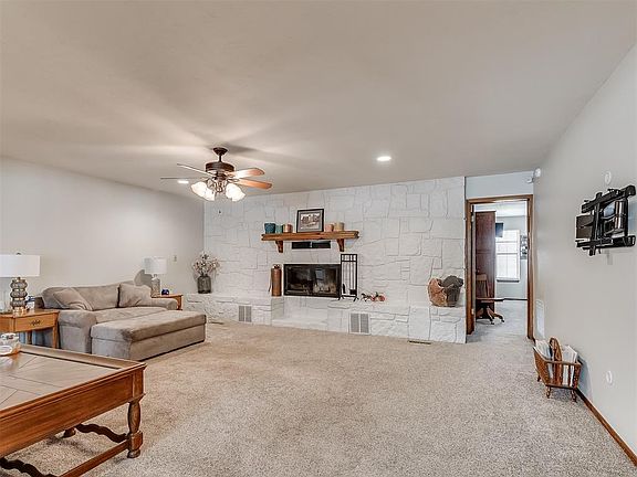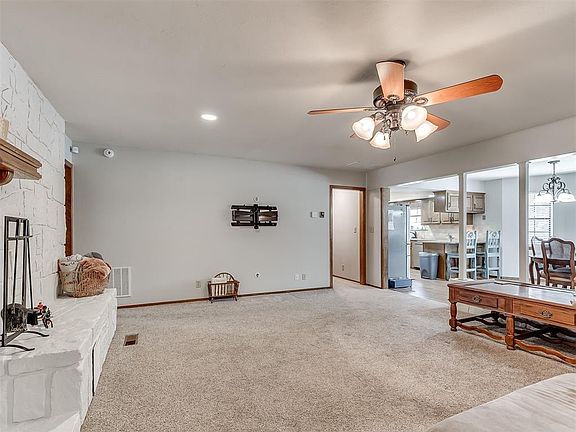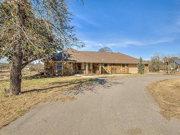 Welcome to your dream home in Harrah, Oklahoma! Nestled on 10 acres of scenic landscape, this stunning 3-bed, 3-bath home offers the perfect blend of comfort and luxury. As you arrive, you'll be greeted by a circle driveway in front, adding convenience and charm to the property. Inside you’ll discover the inviting living room, featuring a large fireplace built into a beautiful painted stone wall, creating a cozy ambiance for gatherings with family and friends. The lovely kitchen features a stylish tray ceiling, granite countertops, and stainless-steel appliances, providing both style and functionality for whipping up delicious treats and entertaining. Retreat to the spacious primary suite, complete with a fully renovated en suite bathroom boasting modern finishes like marbled white countertops on the double vanity and marbled white tile in the standing shower, offering a luxurious escape at the end of the day. The home also features a second living space that could be used as a den, studio, play area, etc. The possibilities are endless! You’ll be wowed when you see the covered back patio! The concrete extends even further beyond the covered portion to a gorgeous wood burning brick fireplace nestled under a custom-built pergola, providing the ideal spot for outdoor entertaining or relaxation. Additionally, the property features a large shop (30x40 with a 20x40 overhang), offering ample space for hobbies or storage. A greenhouse adds to the appeal, providing the opportunity for gardening enthusiasts to cultivate their green thumb. The acreage is wooded along the perimeter, offering beauty and privacy, making it the perfect retreat from the hustle and bustle of city life. Don't miss out on the opportunity to make this spectacular property your own!