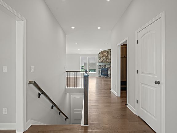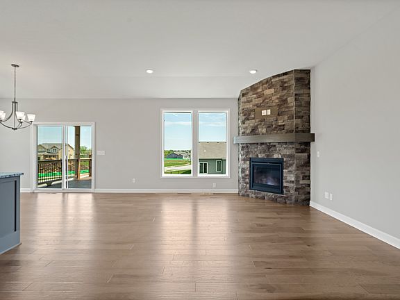 Large windows let tons of bright natural light into the open living space, which features an elegant corner fireplace and a large kitchen island. The owner's entry includes convenient built-in storage and the generously-sized laundry has a built-in folding table and direct access to the oversized master closet. Two additional bedrooms near the front of the house feature walk-in closets.