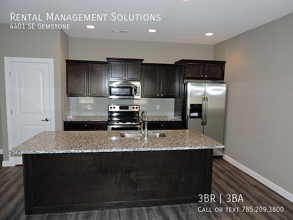This 2025 square foot townhome home has 3 bedrooms and 2.5 bathrooms. This home is located at 4401 SE Gemstone Ln, Topeka, KS 66609.