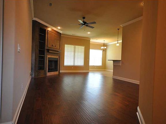 Great floor plan with 4 bedrooms on lower level and bonus (5th bedroom) on 2nd level. 4 full baths (3 down 1 up). Spacious open plan w/ formal dining. Gas insert stove w/ 5 burners, vented hood, sink in laundry room, outdoor fireplace, hardwood floors,huge master closet. Master bath has tiled shower w/ frameless door. Large covered porch. Sprinkler system. Community pool, playground, and acres of common area. $8,000 in buyers closing costs paid!