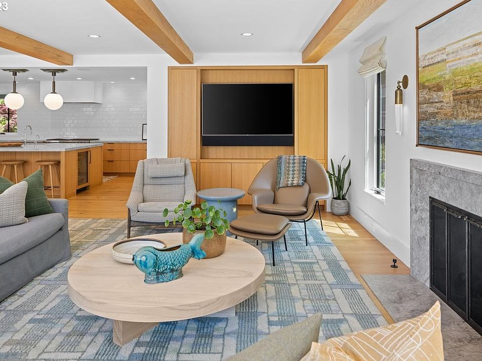 - Features: Beamed Ceilings, Builtin Features, Fireplace, Hardwood Floors