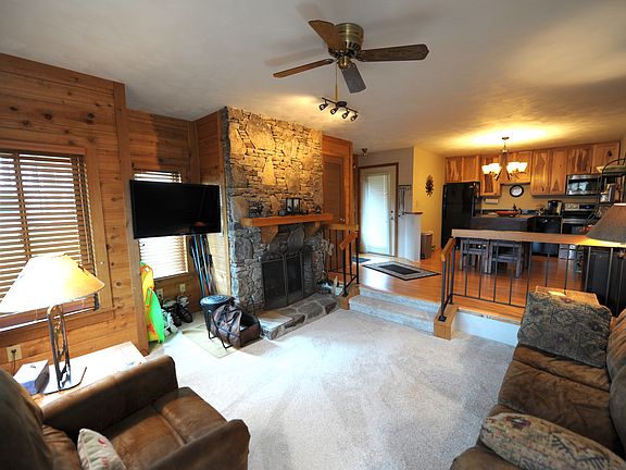 STUNNING 2-bedroom makeover! All of the updates that you may have made are already done! Let's start with custom hickory kitchen & bathroom cabinets both with custom concrete counter tops. They are one of a kind! Then the appliances were upgraded with an electric glass cooktop stove, refrigerator, dishwasher & microwave. Windows were upgraded with Anderson Performance Smartsum Glass along with 2-inch, wooden interior blinds. You will also find 2 new skylights with lowE tempered glass & EDL flashing kits along with 30-year architectural shingles on the roof over spare bedroom addition. The rear entry door & storm door were replaced in 2016. The interior has new carpeting & has been repainted. The mountain stone faced wood burning fireplace draws well & burns cleanly. Guest bedroom has white cedar log bunk beds with a queen/full combination & matching white cedar storage chest. The back deck has a wooded view & privacy! Property is being sold furnished with appliances & accessories.