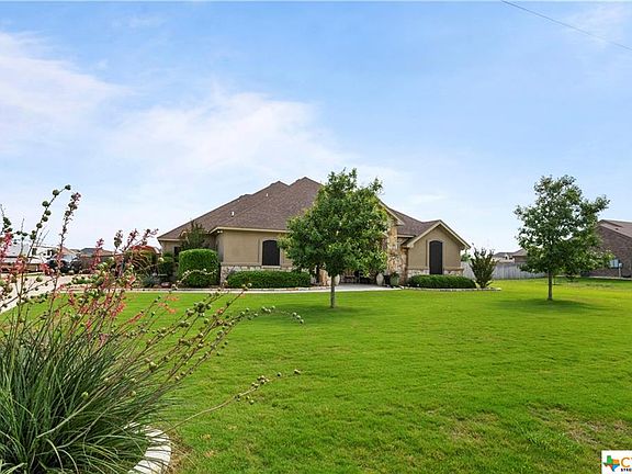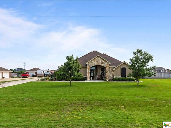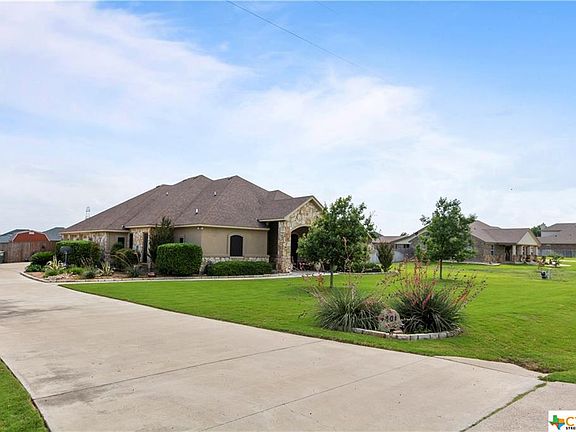 Welcome to the "country feel" but yet close enough to run to the grocery in just a few! This beautiful rock/stucco home sits on over a half acre, has a large front porch, walk into a foyer that looks directly out at an "oversized" picture window to a large covered back patio, split bedrooms, open LR/DR concept w/large kitchen w/ tons of counter space & custom cabinets. Spacious bedrooms & bathroom w/double sinks, counter space with very good closets, nice utility room w/over over sized sink, counter space and broom closet. The master bedroom is spacious with pan ceiling, a very large walk-in closet w/built-inns, master bath has garden tub with separate shower w/rain shower head and "his" closet. 2.5 car large garage with full bathroom w/access to the patio ( to accommodate that new pool). The covered patio leaves little to be desired overlooking a very large fenced yard.
