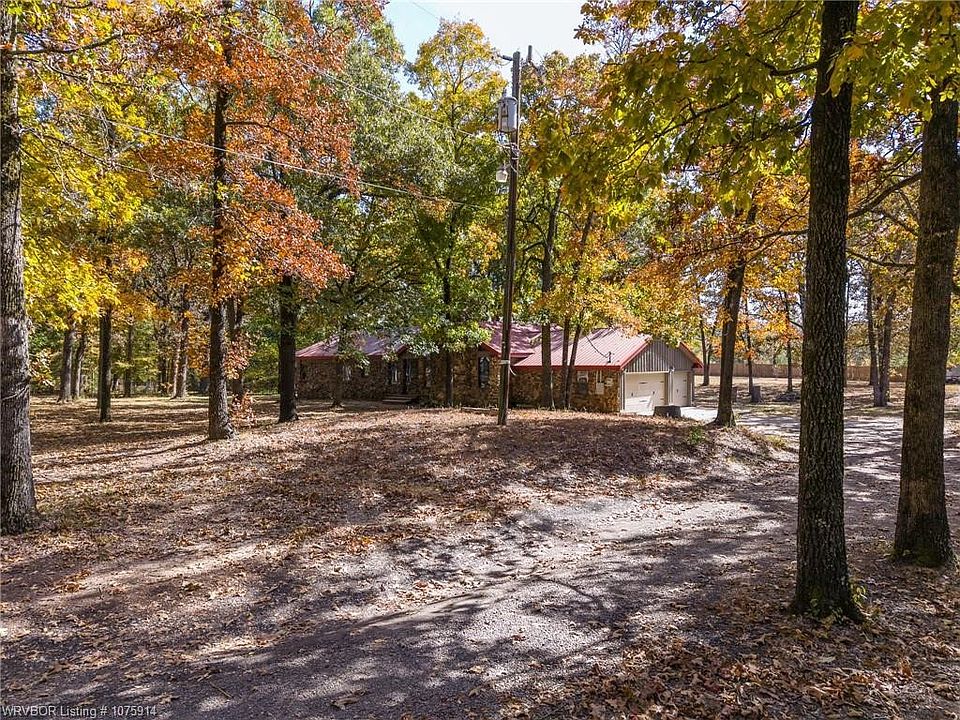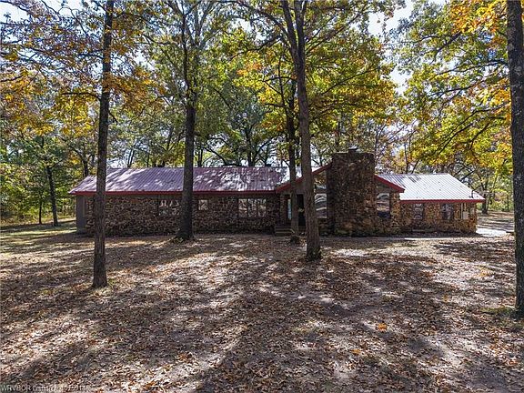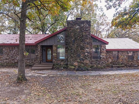 Nestled on a peaceful 2.62-acre lot with mature trees, this charming rock home features a durable metal roof and offers an inviting open floor plan with a cathedral ceiling. The spacious living area includes a cozy wood-burning fireplace, while the home’s beautiful crank-out windows fill the space with natural light. Total electric with energy-efficient LED lighting, this home boasts a well-appointed kitchen complete with granite countertops, stainless steel appliances, a pantry, and a large eat-in area with a bar. The home features two master bedrooms, each with its own en suite. The main master suite opens onto a private deck, perfect for relaxing outdoors. Has a huge walk-in closet with built-ins. A spacious laundry room with a sink & half bath adds extra convenience to the home. Additional features include a two-year-old HVAC system, two-year-old water heaters, & a well on the property. Located within the highly sought-after Greenwood School District, this home combines comfortable living with a serene setting.