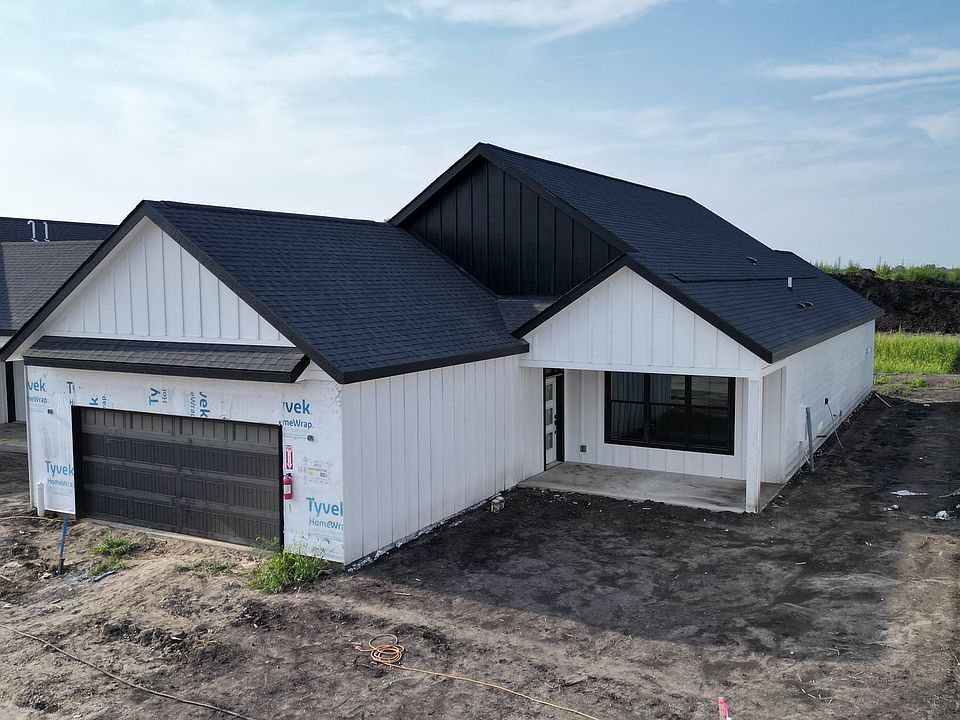 The Fir, our largest single-story floorplan, is an extraordinary two-bedroom, two-bathroom home that offers a range of features sure to impress!As you step inside, you'll immediately notice the attention to detail and high-quality finishes throughout. The quartz countertops add a touch of elegance to the kitchen and bathrooms, while the ceramic tile provides a sleek and modern look. The 10' tray ceilings create an open and spacious atmosphere, optimal for entertaining guests.The private patio is perfectly designed for hosting barbecues with friends or simply enjoying the serene outdoor space. The breakfast bar in the beautiful kitchen is ideal for casual dining or gathering around with loved ones.The luxurious owner's suite boasts a walk-in closet, ensuring ample storage space for your belongings. Additionally, there is a private den that can be used as a home office or a quiet retreat. The second bedroom also features a walk-in closet, providing convenience for guests or family members.The living room is large and airy, offering plenty of natural light and a cozy fireplace for those colder evenings. The layout of this home ensures that living spaces like the living room, kitchen, and dining area are situated towards the back of the home, providing privacy and tranquility!The oversized 2-stall garage offers ample space for vehicles and storage.With its modern farmhouse-style design and zero-entry accessibility, this home offers both style and convenience!