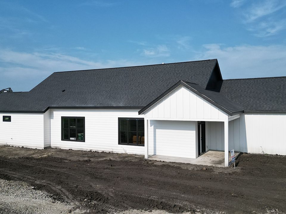 The Evergreen is an exquisite modern farmhouse-style villa offering a fantastic opportunity for anyone looking for a stylish and comfortable home!Featuring 2 bedrooms and 2 bathrooms, this spacious house spans across 2071 square feet of living space. As you step inside, you'll be greeted by the elegant quartz countertops that are found throughout adding a touch of luxury to every corner. The ceramic tile in both bathrooms adds a sleek and modern feel.The 10' tray ceilings create an open and airy atmosphere, while the mudroom provides convenient storage space for all your belongings. The private patio and porch are perfect for hosting gatherings or simply relaxing and taking in the fresh air.The stunning kitchen comes complete with a breakfast bar, ideal for casual dining or entertaining guests. The luxurious owner's suite boasts a walk-in closet, ensuring ample storage space for your wardrobe. Additionally, there is a private den that can be used as a home office or flex area.The second bedroom also features a walk-in closet, providing plenty of storage options. The zero-entry design ensures easy accessibility throughout the house, while the oversized 2-stall garage offers ample parking space and additional storage. With its impeccable finishes and thoughtful design, it's truly a place you'll be proud to call home!