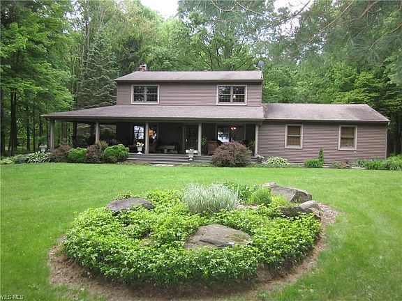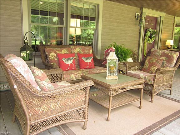 PARK LIKE SETTING surrounds this beautiful home with a tranquil wrap around porch. No need to leave for vacation ~ over 15 acres of privacy!! Updated kitchen includes granite counter tops, huge kitchen island plus a coffee station. Ample sized bedrooms, partially finished basement. Huge outbuilding approx. 40 x 28. Minutes to West Branch and 76. MAKE THIS YOUR NEXT DREAM HOME!