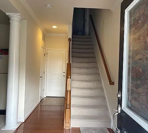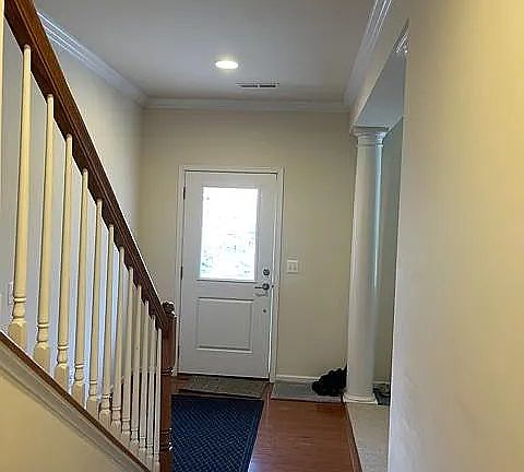 Beautifully maintained 3 Bedroom,2 Full Bath & 1 Half Bath End Unit Town home in East Gate community, over 2,000 Sq.ft of living space, granite counter tops, Maple cabinets, hardwood floors in Kitchen and Dining Area ,Stainless Steal Appliances and an open floor plan with lot of natural light. Close to shopping and restaurants. Play ground and swimming pool are across the street. Day care, Gas, Bank, Groceries, Restaurants are a mile away and walkable distance. Harris Teeter, dunkin donuts, King Spa etc are located within a mile radius. Park and ride with in a mile radius with convenient commute to major happenings at DC and MD. Tenant is responsible for utillities. Owner pays HOA and appliances warranty. No smoking allowed.