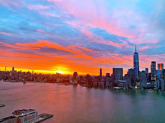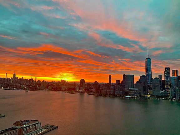 Spacious 3BR Penthouse with panoramic views of NYC from Downtown Jersey City's premiere building: 77 Hudson. 77 Hudson's curtain glass wall allows for unobstructed views and extraordinary light. This pristine home feels like new construction, featuring Portuguese Limestone counters, White Oak hardwood floors, huge master bedroom suite with spa-like bath, plenty of closet space including an extra large walk-in closet, and amazing 180 degree views of the Hudson River, NYC, and Jersey City. 77 Hudson's resort-like amenities include rooftop pool & hot tub, grill area, fire pit, landscaped park, cinema, gym, yoga room, steam, sauna, 24/7 concierge, and more. Prime Paulus Hook/Exchange Place location offers quickest commute to NYC, with PATH & Ferry across the street. Garage parking available for additional $200/mo. Maintenance fee(paid by landlord) includes all heat, water, hot water, gas, and use of all amenities. Parking available for 200/mo