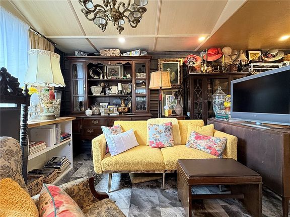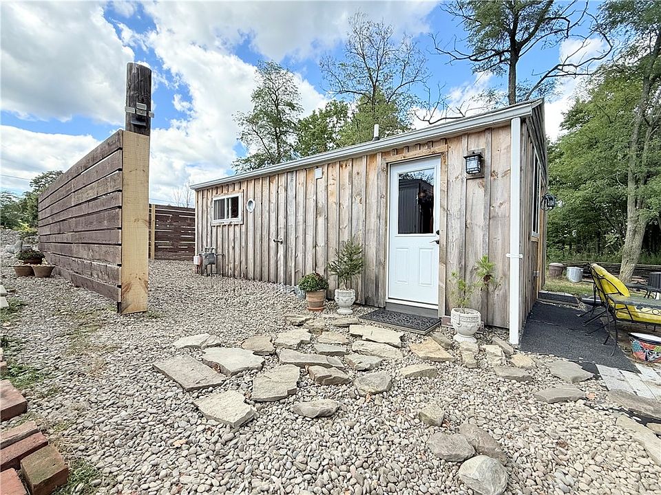 Fully rebuilt from the ground up, this former garage has been transformed into a brand new-tiny home, sitting on nearly 5 acres. The home features underground internet and cable, a brand new gas line, new sewer and water lines, and all new electric with 200 amp service. Additional upgrades include on-demand hot water, new plumbing, new insulation, new gutters and granite countertops. On the property, you'll also find a single wide that needs some TLC. Remodel it into a second home, convert it into a shop or storage space, or remove it altogether to make room for your own vision. Whether you're looking for an Airbnb investment, a hunting cabin, a weekend getaway, or simply a place to call home, this unique property has so much potential. SOLD AS IS.