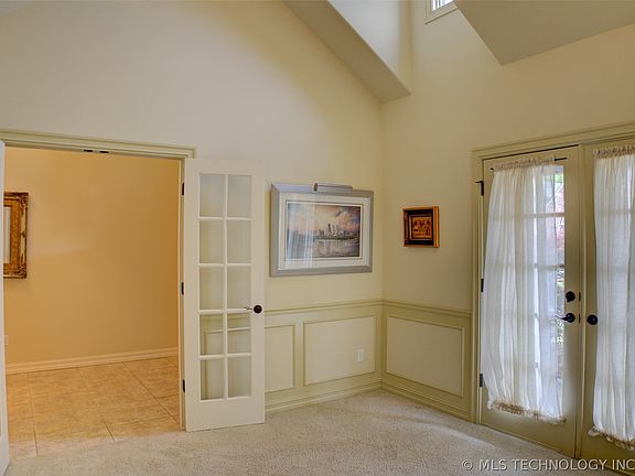 A luxurious, low maintenance life style awaits you in the beautiful gated South Tulsa community. The gorgeous great room features vaulted ceilings, built in bookcases stone fireplace and wonderful natural lighting. You will be ready to host all your parties with the magnificent formal dining room. The vaulted primary en suite has his and her closets, separate vanities, separate shower and jetted tub. The backyard has a beautiful large covered patio. Neighborhood pool and clubhouse.