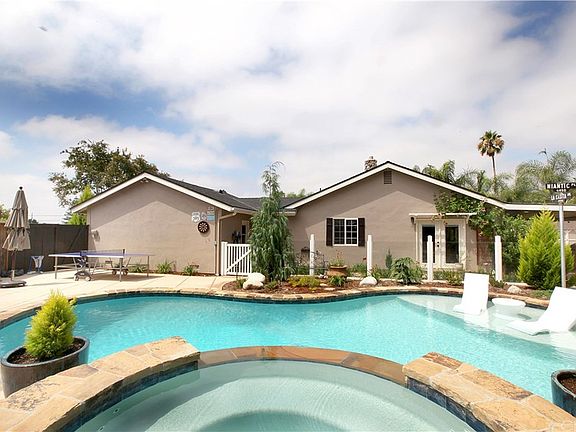STUNNING remodeled SINGLE STORY home designed with classic elegance and taste ~ Contemporary decor with neutral tones and open floor plan ~ This spectacular home has chic and stylish upgrades including White Oak wood flooring, recessed lighting, crown molding and dual paned windows ~ A lot of thought went into the impeccable design details in this home ~ Gorgeous remodeled kitchen with custom white cabinetry, stainless steel appliances, wine fridge ~ computer desk and sunny window over the sink ~ Sprawling formal living room features stone fireplace, French doors and ceiling fans ~ Master bedroom features French doors, elegant private bathroom with jetted tub, separate shower and walk in closet ~ Remodeled hall bathroom features a slate walk in shower ~ California outdoor resort style living in this private back yard! Covered patio with recessed lighting is perfect for an outdoor living and dining area ~ Sparking remodeled pool with Baja entry, spa and vinyl and tempered glass security fencing ~ River rock Cabana with granite counters and fridge ~ Convenient inside laundry that opens to finished garage with pull down attic access and recessed lighting~ Newer roof and rain gutters ~ Nice location on a cul-de-sac ~ Inviting curb appeal with river rock wainscoting and dry creek bed landscaping ~ Yorba Linda high school district ~ 4 bedroom single story pool homes are in demand in Yorba Linda! THOUSANDS AND THOUSANDS in upgrades (per seller)!
