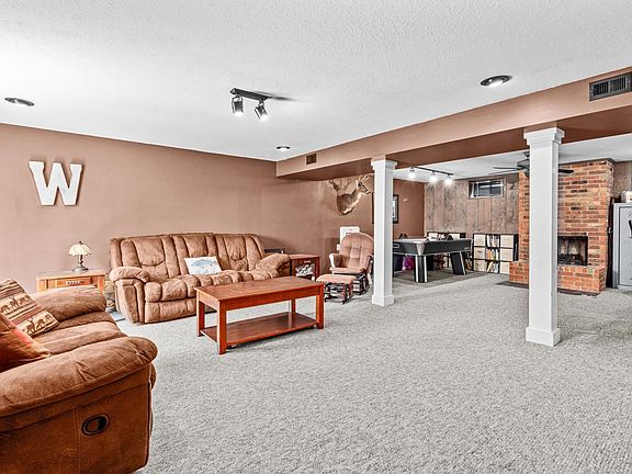 This all brick home will be perfect for entertaining with the inground pool, wood deck, privacy fencing and expansive patio area, not to mention the Additional storage building with electric. On the main level there are three bedrooms and two baths, updated laminate flooring and white kitchen with stainless/black appliances, laundry with cabinets, a hanging area and room for your freezer, go downstairs and enjoy 728 sf. of living space, another living area option with fireplace and bar/eating area or use as another bedroom if needed, two windows and patio doors allow for natural light and the HVAC was updated in Feb 2024.