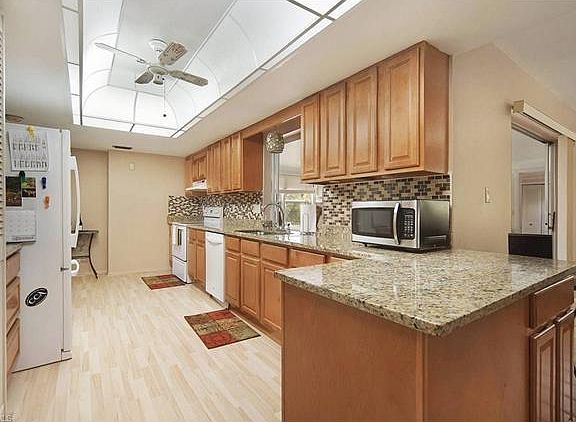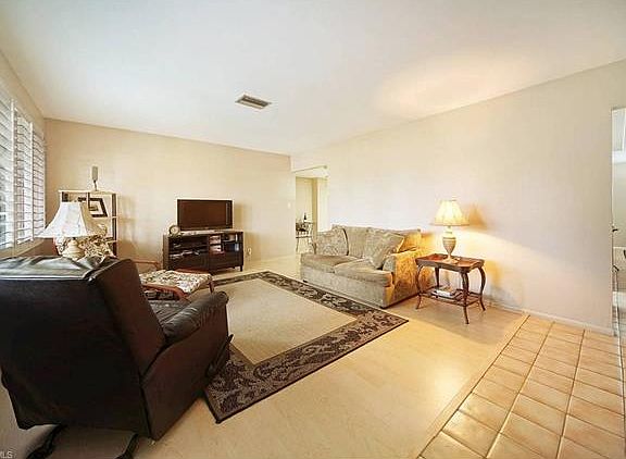 This 3 bedroom home with 2 bathrooms has a living room, family room and a dining room area. As you walk into the home the living room which features laminate floors and plantation shutters. The master bathroom is separate from the other bedrooms with laminate floor and a nice walk in closet and bathroom. The rooms all have been freshly painted. The kitchen features granite countertops with plenty of wood cabinets and tile floor. The kitchen opens up to the dining area and family room. There is a bedroom off of the family room and separate from the other bedroom with laminate flooring. As you go in the backyard with nice lush landscaping and huge tree's and throughout the back yard is pathways with brick pavers. This yard is oversized and has a lot of potential. It is located with easy assess to Cape Coral Parkway, dining and shopping.