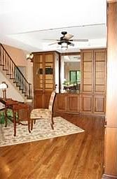 Great location, space and flexible flr plan. Custom built-ins. New hrdwoods on 1st flr. New carpet in MBR, upstairs bdrs, and Fin LL which is perfect for theater/media w/wet bar, commanding office, bath/sauna, w/o to beautiful private brick patio. Refinished hob-nailed hardwoods in Kit.