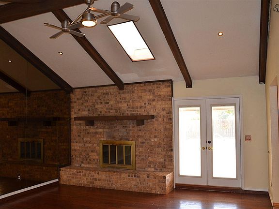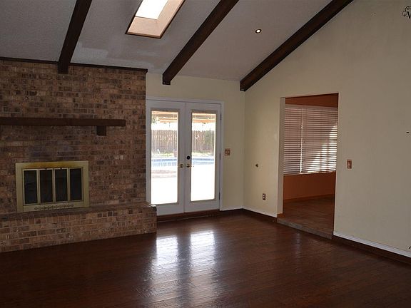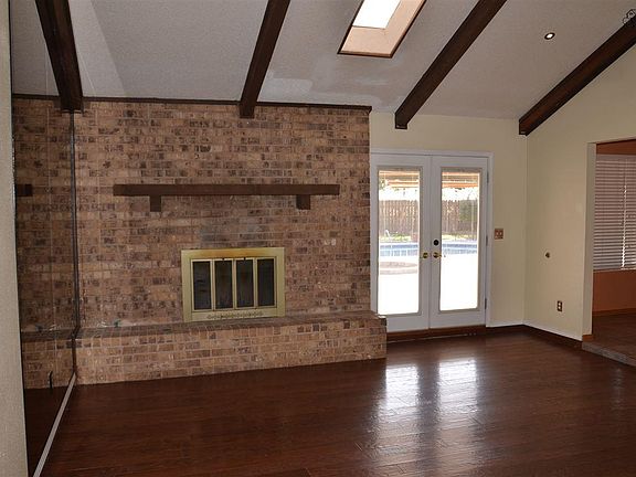 Updated home with gorgeous hand scraped hardwood flooring and vaulted ceilings. Newer appliances, updated kitchen cabinets. Isolated master suite. Both bathrooms are remodeled. Security cameras stay. Inground pool with newer liner and pool pump. Storm shelter, storage building, fire pit, outdoor shower, and covered patio. On the Southwest edge of town in the most desirable school districts!!