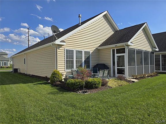 Meticulously maintained, like-new home awaits in the Luxurious Community, Traditions of America at Saucon Valley. Located in an Active Adult 55+ community the home is situated on one of the best lots! Breathtaking views of rolling farmland, under a protected land preserve which restricts any future building, provides a lifetime of incredible views! This 3 bed and 2 bath home has excellent flow and functionality. One-Owner Seller's have selected all the builder upgrades with over $120,000 in upgrades included. The main level features an open floor plan with abundant natural light, wide-plank hardwood flooring, luxury trim package and a customized Laundry/Den/Pantry. The spacious kitchen is absolutely gorgeous offering granite countertops, tile backsplash, and black stainless steel appliances. Organization and storage with maximum potential. Tons of customized storage with an additional fully walk up, partially finished, attic storage - could be finished as additional bedroom. The great room features a cathedral ceiling, ceiling fans and a lovely gas fireplace with an upgraded stone surround. Large windows complete with plantation shutters flood the entire home with natural light. Outside, includes a screened in porch with electric for a television setup. An additional full-sun patio off of the screened in porch. 3rd bedroom currently setup as second office space. Call today for a showing!