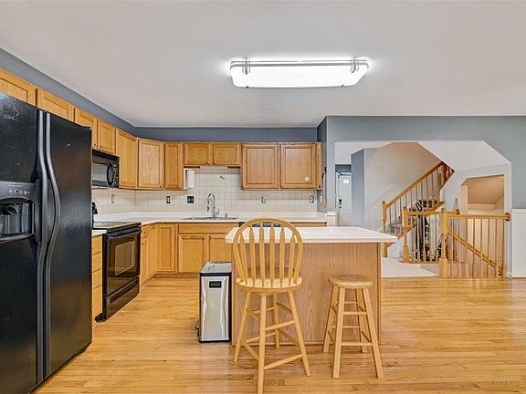 The heart of this home is the expansive kitchen, featuring beautifully finished hardwood floors, a central island, and an abundance of cabinet and counter space—ideal for cooking and entertaining. Adjacent to the kitchen is a charming sunroom/dining area adorned with stunning hardwood floors, where you can enjoy meals or relax with a cup of coffee.