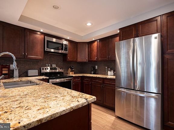Looking for low maintenance living? Come see this beautifully updated 1 bedroom condominium in Pike Creek! Located in the 4400 building, this lower level condominium is in move in ready condition and ready for a new owner. Entering the property you'll notice the neutral paint colors, tray ceilings, large windows, and recessed lighting throughout the unit. This condominium offers an open concept, flowing layout, and an abundance of natural light! The kitchen has beautiful granite countertops, neutral backsplash, stainless steel appliances, cherry cabinets, double sink, and large pantry. The spacious dining room with chandelier overlooks the living room featuring high ceilings, wood burning fireplace, AND BRAND NEW sliding glass doors which leads you to the partially enclosed tiled patio. Primary bedroom is extremely spacious and you also have access to the intimate enclosed patio from this bedroom. Full bathroom has a gorgeous floating vanity with plenty of surface space, mosaic mirror, medicine cabinet, and neutral tiling in the shower/tub combo. ALL hard surface flooring throughout, no need to worry about carpet cleaning! Washer and dryer located off of the kitchen in the utility room with newer hot water heater. Come see this one today!