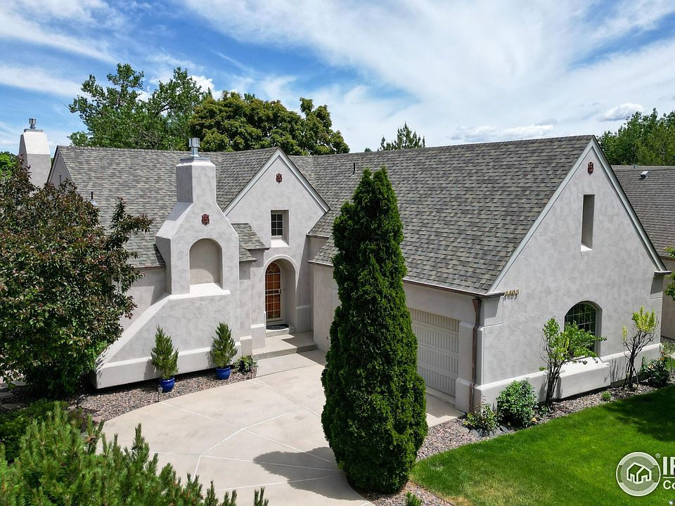 Unique opportunity in the exclusive Pyrenees neighborhood. French Country architecture ranch home in a park-like setting. This home includes 1/6th ownership of the 2.32 acre Conservation Easement to the North, which cannot be developed. Enjoy views from enormous deck of open space, a small brook, wildlife and mountains. Main floor with solid wood floors, soaring ceilings, and fireplaces in the living room and kitchen. All bathrooms have been recently updated. Wet bar, wine cellar, and theater area in basement. Stunning, elegant exterior architecture with copper gutters/downspouts and beautiful, low maintenance yard. Newer roof, Anderson widows and sliders, upgraded insulation, tankless water heater, and retractable patio shade with remote. Garage has epoxy floor. Home has been meticulously cared for. See list of upgrades and maintenance. Rentals are not permitted in this neighborhood. 1-year First American Home Warranty included.